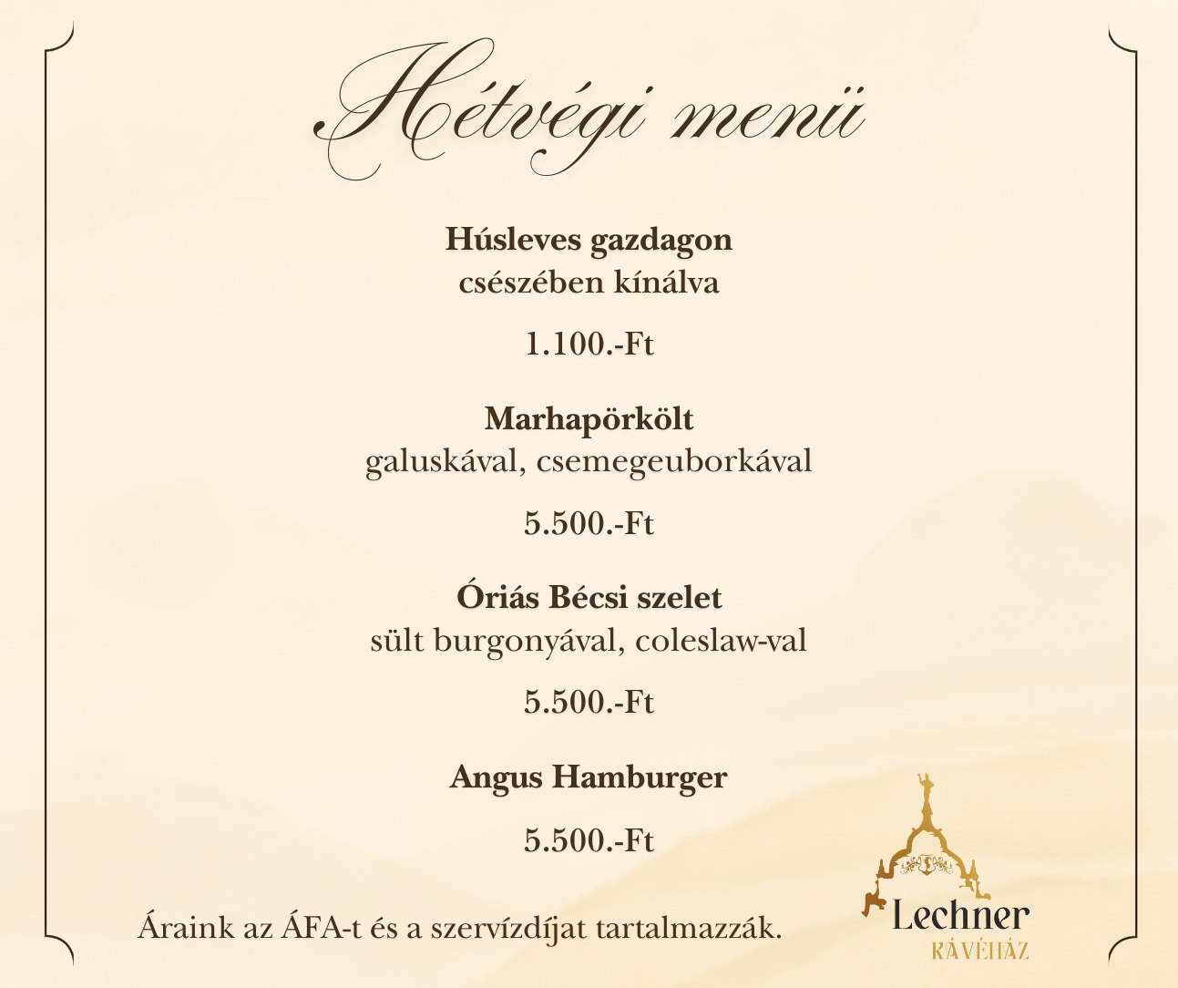 Érezze jól magát nálunk, válogasson kedvére étel és ital különlegességeink között, vigye jó hírünket és látogasson el hozzánk legközelebb is!